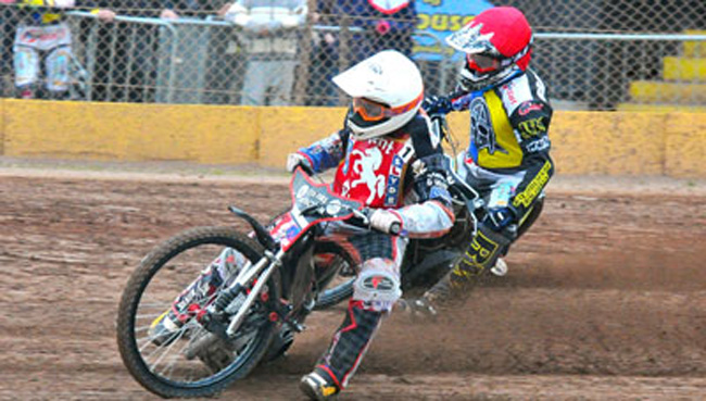 Heat 6 was ultimately to be a decisive point of the evening with the outcome destined to lose the SLYDE Kings the full set of points their fantastic endeavours deserved. Branford made a terrific gate with Couzins and Shanes left in his wake. On the second lap Shanes passed his team-mate at speed down the back straight and set out in direct pursuit of the rider from Adelaide. It was a kamikaze effort, though and Shanes hit the fence heavily on the exit from the fourth bend just after the padded protection of the air barrier. Remarkably he bounced up but – holding his shoulder – it was clear the badly shaken teenager was not going to take any further part in the meeting and that medical prognosis was confirmed soon after. Shanes’ disqualification changed a nailed-on shared heat to a 4-2 to the home side.