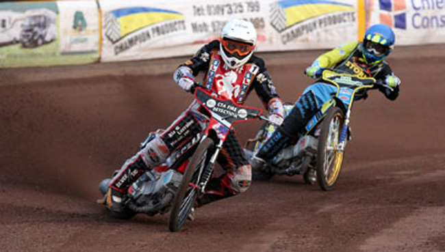 Danny Ayres’ over-exuberance at the start of heat 7 could’ve caused a problem: the tapes were touched and he was back off a 15 metres handicap in the restart. However, the buccaneering Ayres was in determined mood, passing the Storm’s rookie reserve Callum Walker and then getting past team-mate Baseby before running the Storm’s top scorer Darryl Ritchings very close.