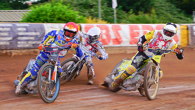 First to step up to the plate in heat 2 was debutant George Hunter – pulling away from the man he’s replaced in the Kings’ line up and in the affections also of a very large traveling contingent of Kent fans, Alex Spooner. The diminutive Anders Rowe tucked in for the first of five scoring rides on the night – an impressive showing by both young reserves. That heat advantage tied matters up and it stayed that way until heat 5 which was to be the first of a total of two 5-1s for the hosts which ultimately proved the difference. The surprise winner was a jubilant Chris Widman partnered by the ever-reliable James Cockle – with Andrews and Hunter unable on this occasion to stem the flow.
